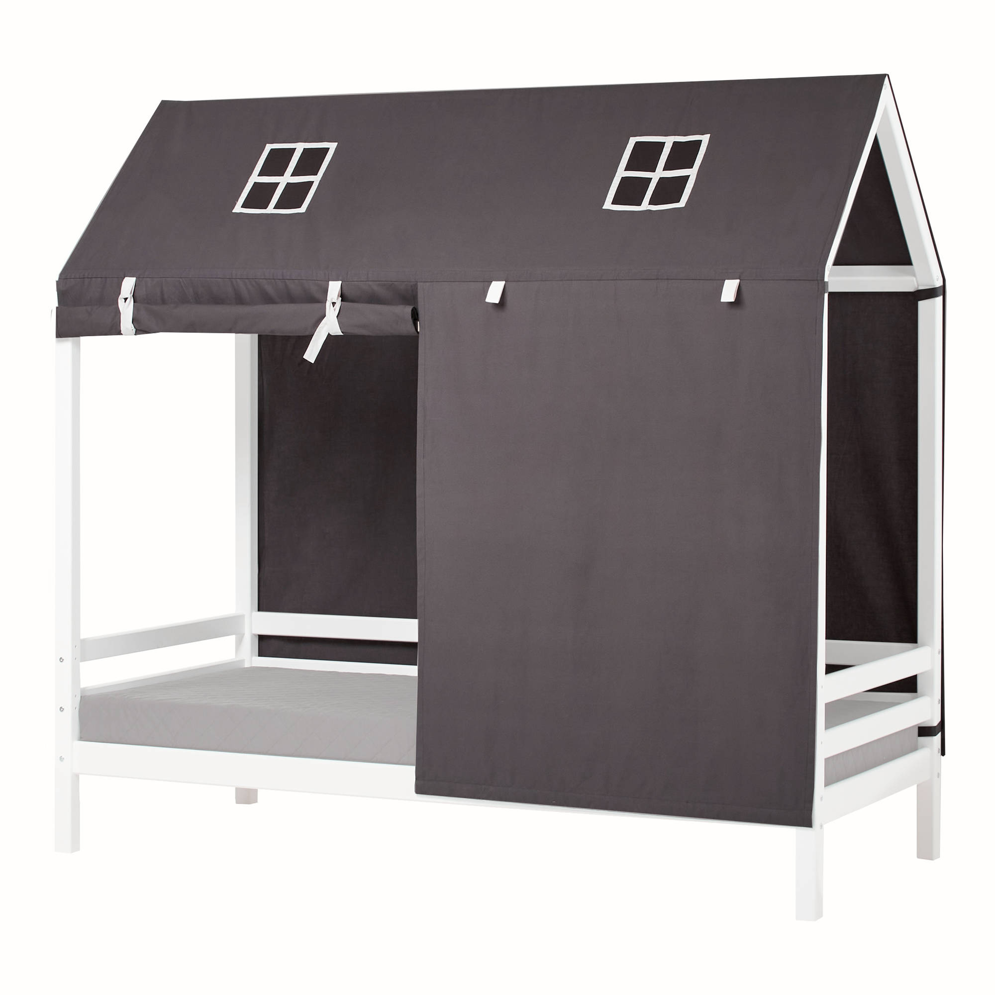 Takdraperiet till spjälsängen formar ett underbart hem för ditt barn. Genom textilierna kan du skapa olika stämningar i barnrummet och låta ditt barns fantasi flöda fritt. Draperierna är delade i mitten så att du kan öppna dem på det sätt du önskar. Textilierna fästs enkelt med velcro, vilket gör att de snabbt och lätt kan tas bort. Takdraperier finns i flera olika mönster och varje mönster har också andra textiltillägg som lakan, kuddar och tunnlar. Låt din kreativitet få flöda och skapa ett barnrum där det är roligt att leka och sova. Kan tvättas i 30 grader och strykas med strykjärnets bomullsinställning. Torktumla inte.