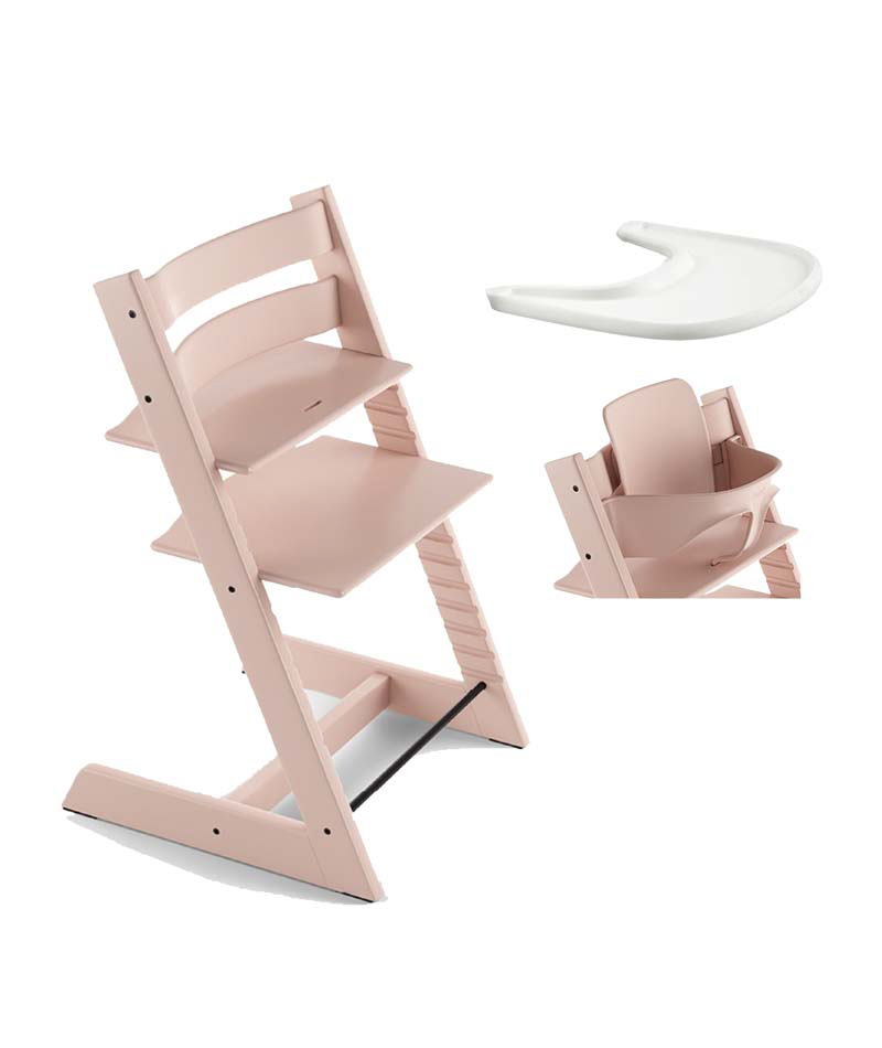 Tripp Trapp startpaket Stokke Serene Pink innehåller Stokken Tripp Trapp matstol, Baby Set och bricka.