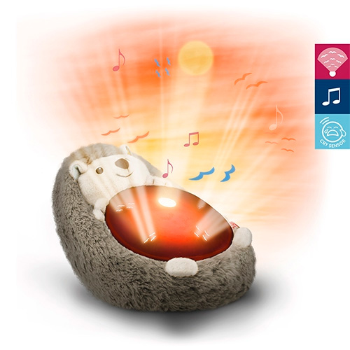 Zazu Henry Hedgehog nattljus och projektor/ljusfunktion skapar en lugnande atmosfär för baby och småbarn i barnkammaren. Henry är en söt igelkott som projicerar en magisk savannsolnedgång på taket. Medan ditt barn följer de flygande fåglarna spelas en lugnande melodi som hjälper barnet att somna i sin säng med tre olika programinställningar.