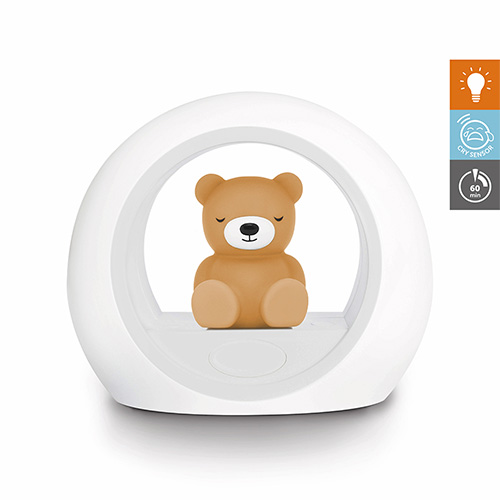 Björnlampa för barnrummet. Timer-lampa som även tänds när barnet gråter.