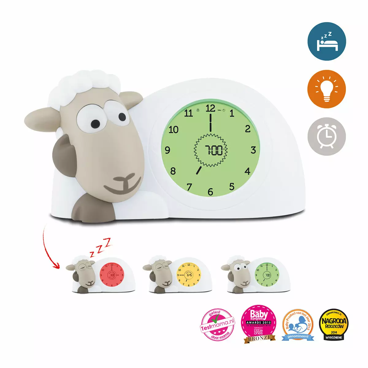 Zazu Sleeptrainer Sam Taupe är en sömntränare för småbarn som visar när det är dags att gå upp och när det är dags att stanna kvar i sängen. Den kompakta sömntränaren fungerar både som klocka och nattlampa i barnrummet.