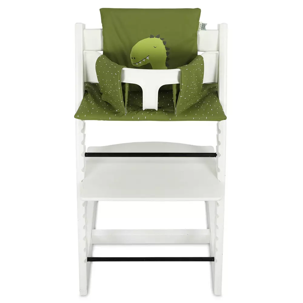 Trixie sittdyna Mr. Dino ger en touch av lekfullhet till måltidstider. Den gröna dinosauriemönstrade sittdynan passar perfekt till Stokke Tripp Trapp matstol. Dynan passar både med och utan babyinsatsen, enbart stolen. Dynan är vattentät och lätt att torka av. Enkel fästning med kardborreband.